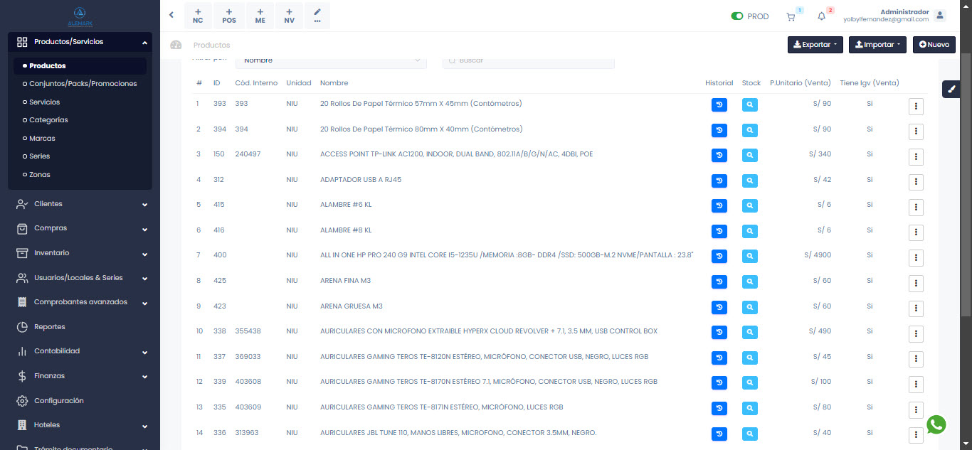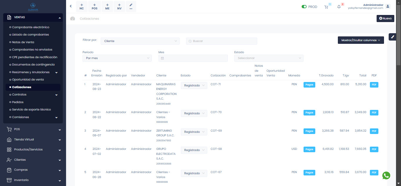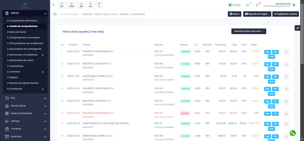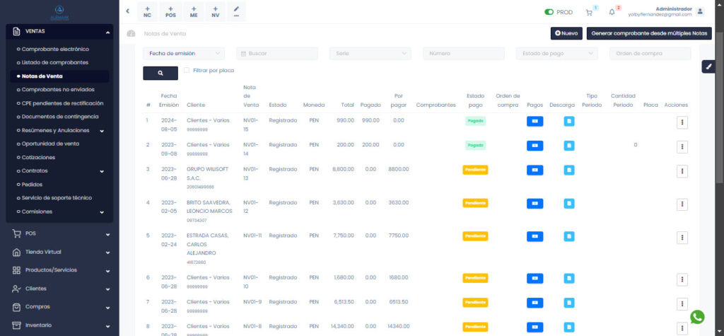 💼 Ventas y Facturación Electrónica: Emite comprobantes electrónicos (boletas, facturas, notas de crédito y débito) con envío automático a SUNAT.
